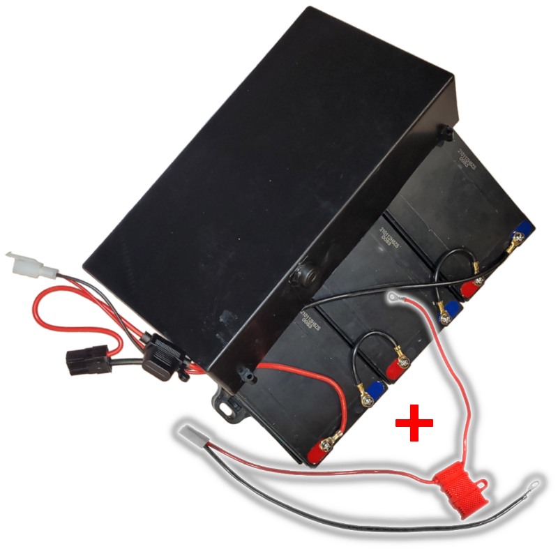 Includes 3x 12V12AH 6-DZF-12 cells, case & separate white harness adapter. Case may require trimming a tab to fit on some older models.