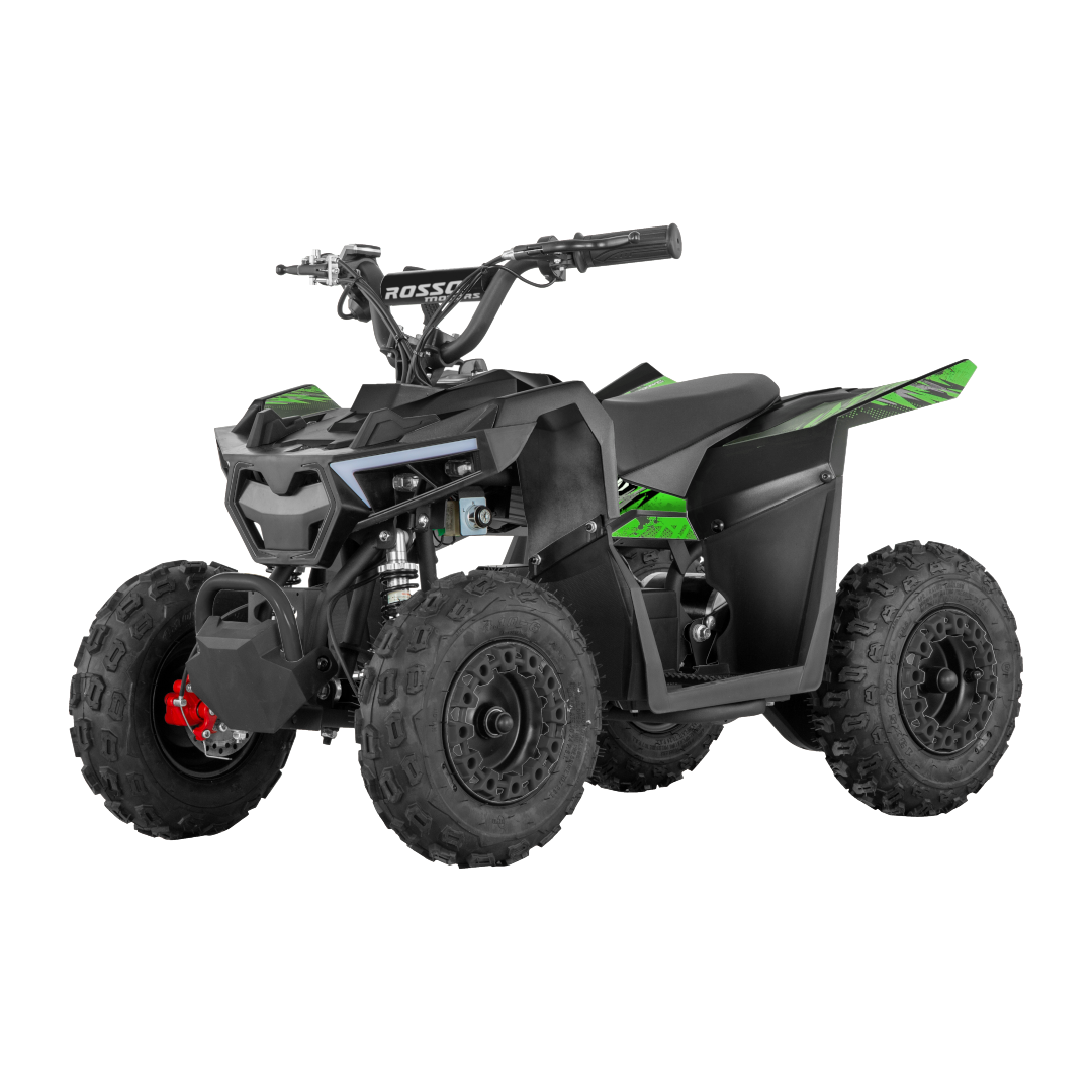 Featuring a 36V battery and 1000W motor, it adds up to an extra 5mph for kids with a need for speed. The Rosso Motors Kids ATV is sleekly designed to be a miniature version of "grown-up" ATVs such as the Yamaha Grizzly, Polaris Sportsman or Can-Am Outlander to give your kids the excitement of real ATV riding in their own backyard, so they can look and feel just like mom and dad!
